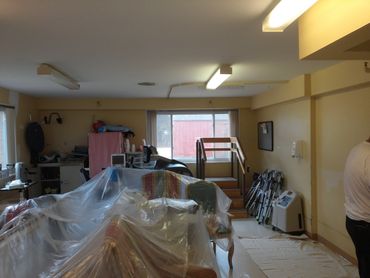 Painted walls, trim and baseboard areas. Installation of new flooring.