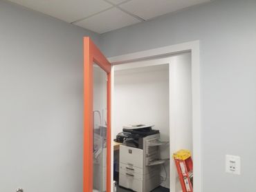Primed, Caulked, and Painted, both moulding and wall areas. Sanded, Stained, and Sealed hardwood floors. Installation of new electrical outlets covers.