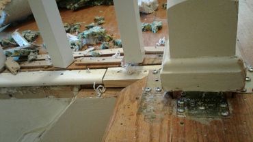 Removal of both carpet padding and carpet. Prepped area for new floor & baseboard installation.